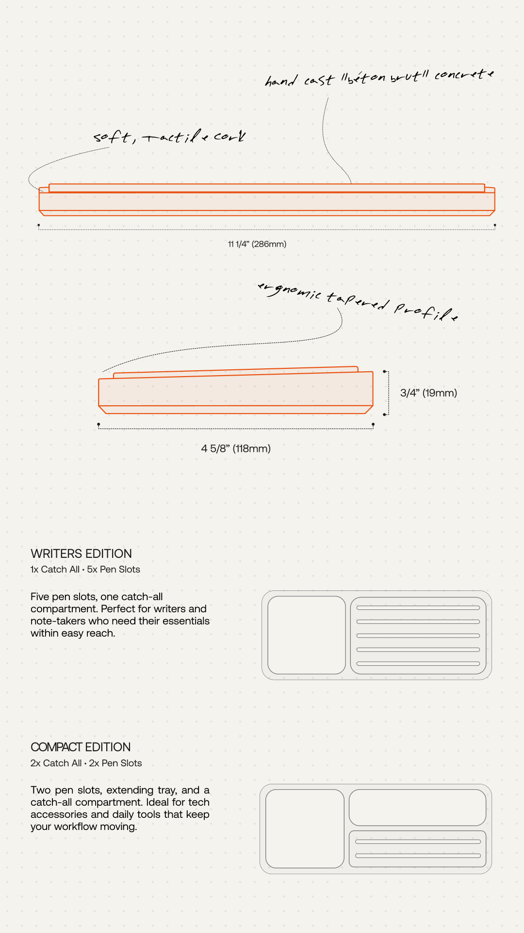 A thoughtful organizer that brings together industrial concrete and natural cork. Built to keep your daily tools visible and accessible, not buried in drawers.